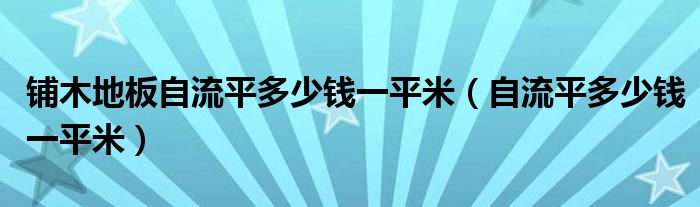 铺木地板自流平多少钱一平米(自流平多少钱一平米)