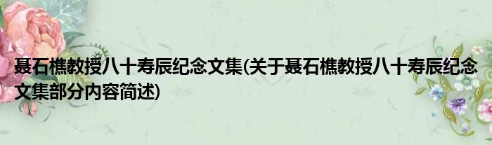 导读 大家好,今天小方来说说一篇关于聂石樵教授八十寿辰纪念文集,关于聂石樵教授八十寿辰纪念文集部分内容简述的文章,那么现在就为大家来简单