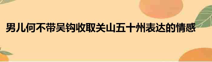 导读 大家好,小活来为大家解答以上的问题。男儿何不带吴钩收取关山五十州表达的情感这个很多人还不知道,现在让我们一起来看看吧!1、意思是:男