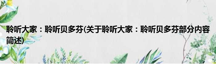 导读 大家好,今天小方来说说一篇关于聆听大家:聆听贝多芬,关于聆听大家:聆听贝多芬部分内容简述的文章,那么现在就为大家来简单介绍下,希望