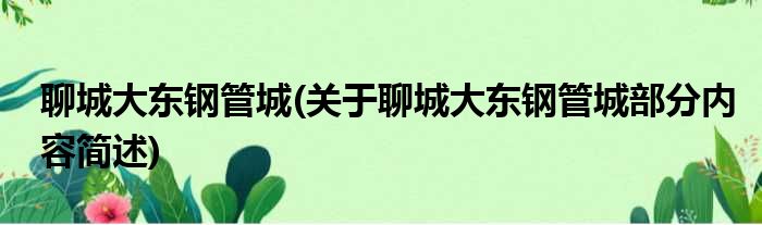 聊城大东钢管城(关于聊城大东钢管城部分内容简述)