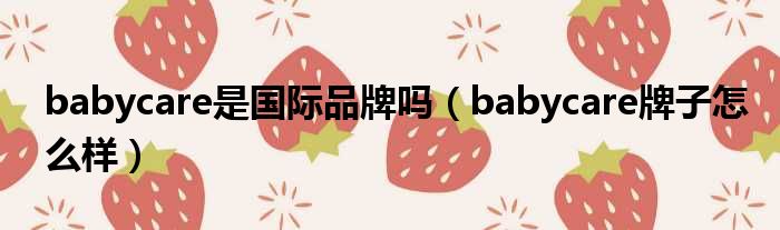导读 大家好,小活来为大家解答以上的问题。babycare是国际品牌吗,babycare牌子怎么样这个很多人还不知道,现在让我们一起来看看吧!1、其实babyc