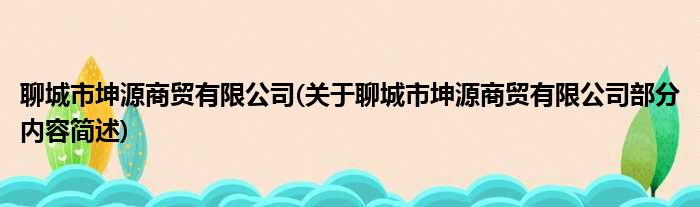 聊城市坤源商贸有限公司(关于聊城市坤源商贸有限公司部分内容简述)