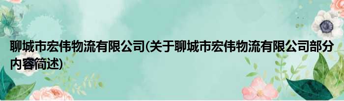 聊城市宏伟物流有限公司(关于聊城市宏伟物流有限公司部分内容简述)
