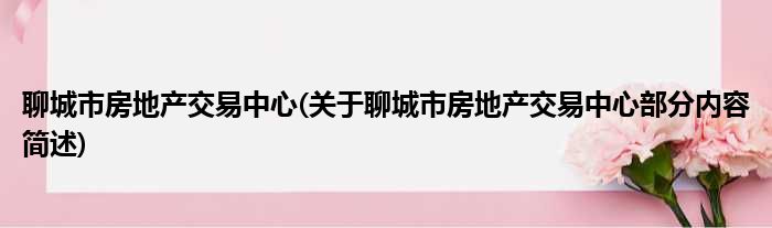 聊城市房地产交易中心(关于聊城市房地产交易中心部分内容简述)