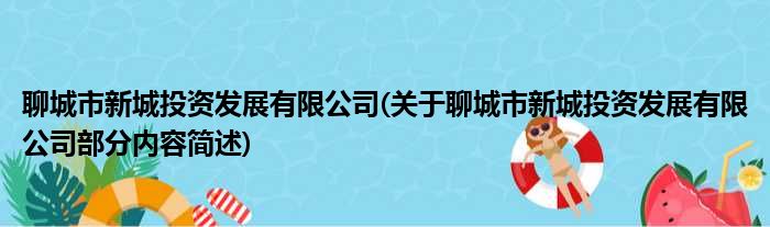 聊城市新城投资发展有限公司(关于聊城市新城投资发展有限公司部分内容简述)