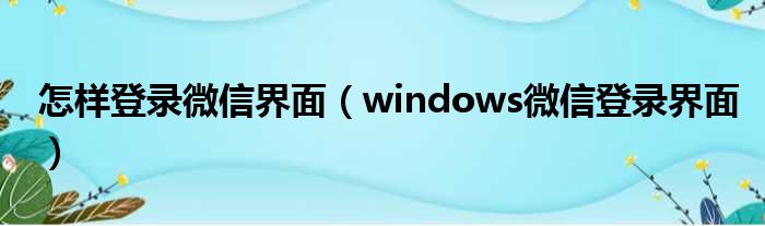 怎样登录微信界面(windows微信登录界面)