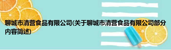 聊城市清营食品有限公司(关于聊城市清营食品有限公司部分内容简述)