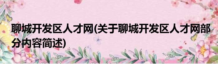 聊城开发区人才网(关于聊城开发区人才网部分内容简述)