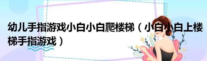 导读 大家好,小活来为大家解答以上的问题。幼儿手指游戏小白小白爬楼梯,小白小白上楼梯手指游戏这个很多人还不知道,现在让我们一起来看看吧!1