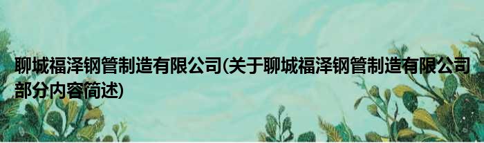 聊城福泽钢管制造有限公司(关于聊城福泽钢管制造有限公司部分内容简述)