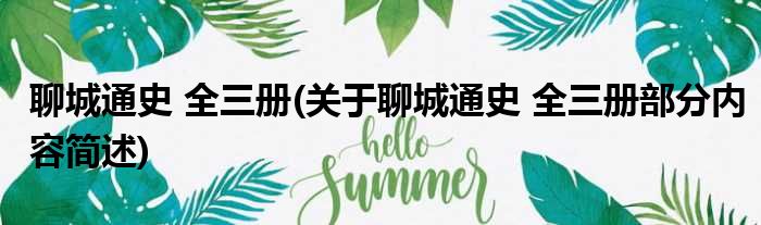 导读 大家好,今天小方来说说一篇关于聊城通史 全三册,关于聊城通史 全三册部分内容简述的文章,那么现在就为大家来简单介绍下,希望对各位小
