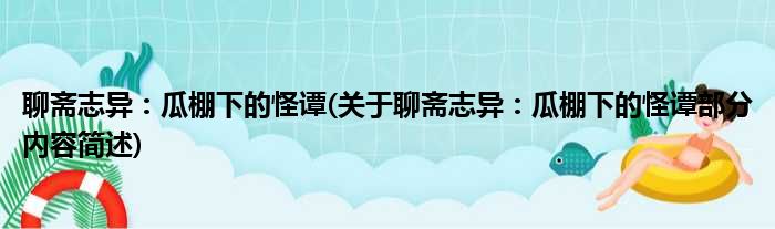 导读 大家好,今天小方来说说一篇关于聊斋志异:瓜棚下的怪谭,关于聊斋志异:瓜棚下的怪谭部分内容简述的文章,那么现在就为大家来简单介绍下,