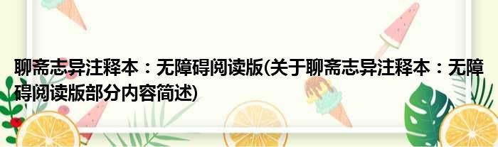 导读 大家好,今天小方来说说一篇关于聊斋志异注释本:无障碍阅读版,关于聊斋志异注释本:无障碍阅读版部分内容简述的文章,那么现在就为大家来