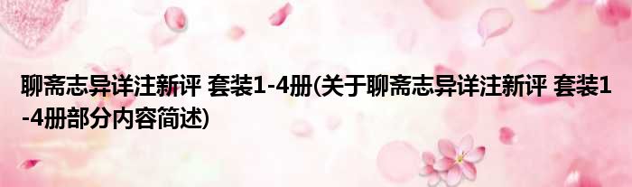 导读 大家好,今天小方来说说一篇关于聊斋志异详注新评 套装1-4册,关于聊斋志异详注新评 套装1-4册部分内容简述的文章,那么现在就为大家来简