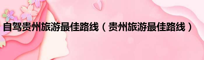 自驾贵州旅游最佳路线(贵州旅游最佳路线)