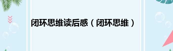 大家好,小活来为大家解答以上的问题。闭环思维读后感,闭环思维这个很多人还不知道,现在让我们一起来看看吧!