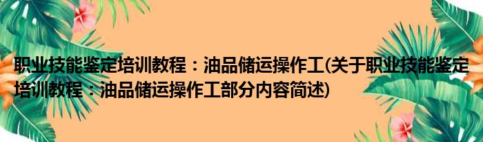 导读 大家好,今天小方来说说一篇关于职业技能鉴定培训教程:油品储运操作工,关于职业技能鉴定培训教程:油品储运操作工部分内容简述的文章,那