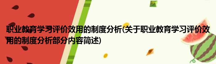 职业教育学习评价效用的制度分析(关于职业教育学习评价效用的制度分析部分内容简述)