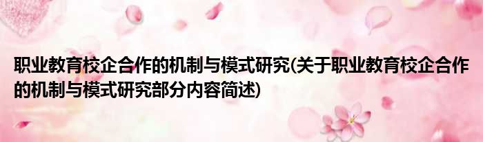 职业教育校企合作的机制与模式研究(关于职业教育校企合作的机制与模式研究部分内容简述)