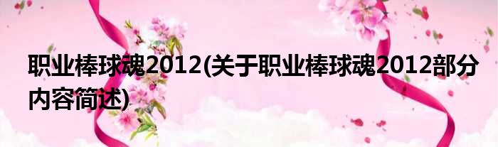职业棒球魂2012(关于职业棒球魂2012部分内容简述)
