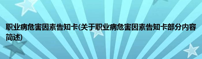 职业病危害因素告知卡(关于职业病危害因素告知卡部分内容简述)