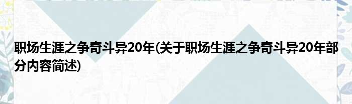 职场生涯之争奇斗异20年(关于职场生涯之争奇斗异20年部分内容简述)