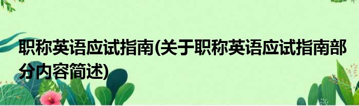 导读 大家好,今天小方来说说一篇关于职称英语应试指南,关于职称英语应试指南部分内容简述的文章,那么现在就为大家来简单介绍下,希望对各位小