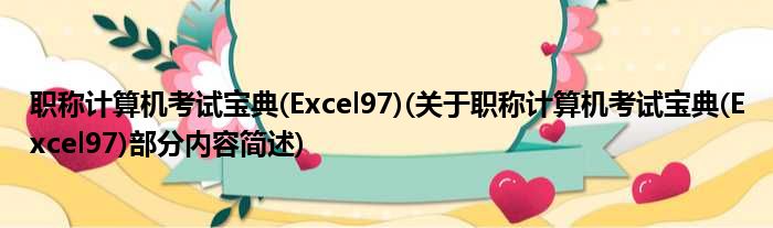 导读 大家好,今天小方来说说一篇关于职称计算机考试宝典,Excel97,关于职称计算机考试宝典,Excel97部分内容简述的文章,那么现在就为大家来简