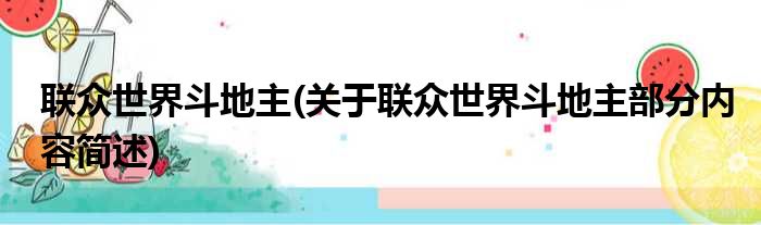 联众世界斗地主(关于联众世界斗地主部分内容简述)