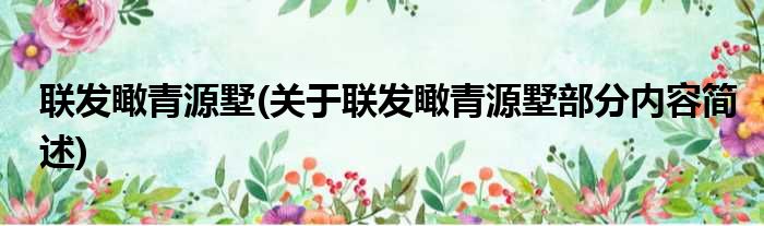 联发瞰青源墅(关于联发瞰青源墅部分内容简述)