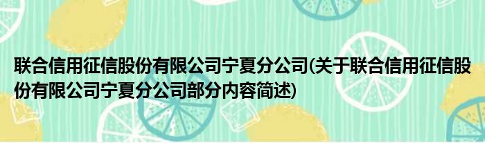 联合信用征信股份有限公司宁夏分公司(关于联合信用征信股份有限公司宁夏分公司部分内容简述)