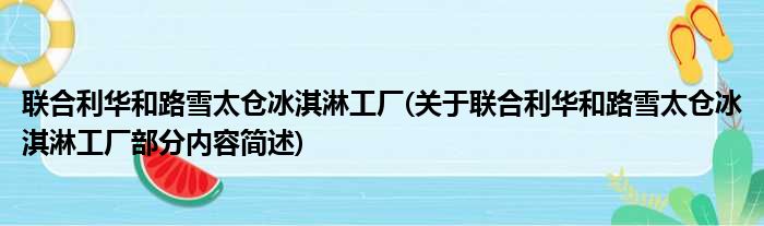 联合利华和路雪太仓冰淇淋工厂(关于联合利华和路雪太仓冰淇淋工厂部分内容简述)