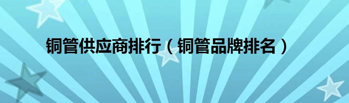 大家好,小活来为大家解答以上的问题。铜管供应商排行,铜管品牌排名这个很多人还不知道,现在让我们一起来看看吧!