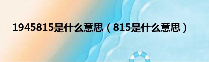 1945815是什么意思(815是什么意思)