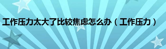 大家好,小活来为大家解答以上的问题。工作压力太大了比较焦虑怎么办,工作压力这个很多人还不知道,现在让我们一起来看看吧!