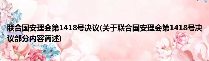 联合国安理会第1418号决议(关于联合国安理会第1418号决议部分内容简述)