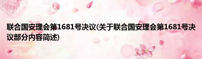 1、 《联合国安理会第1681号决议》是2006年5月17日安全理事会第5440次会议通过的一项决议。