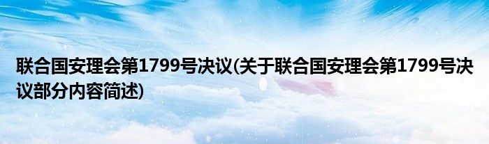 导读 大家好,今天小方来说说一篇关于联合国安理会第1799号决议,关于联合国安理会第1799号决议部分内容简述的文章,那么现在就为大家来简单介绍
