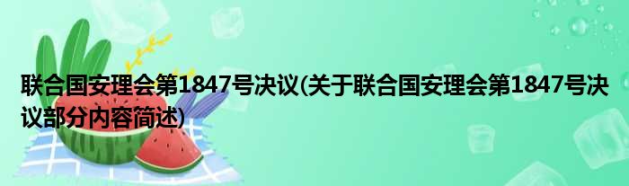 1、 《联合国安理会第1847号决议》是2008年12月12日安全理事会第6038次会议通过的一项决议。