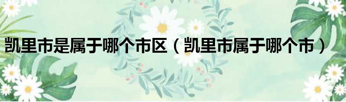 凯里市是属于哪个市区(凯里市属于哪个市)