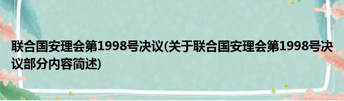 1、 《联合国安理会第1998号决议》是2011年7月12日安全理事会第6581次会议通过的一项决议。