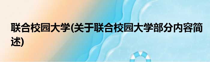 导读 大家好,今天小方来说说一篇关于联合校园大学,关于联合校园大学部分内容简述的文章,那么现在就为大家来简单介绍下,希望对各位小伙伴们有