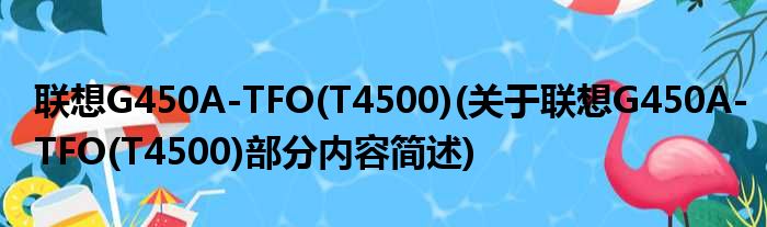 联想G450A-TFO(T4500)(关于联想G450A-TFO(T4500)部分内容简述)