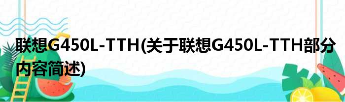 联想G450L-TTH(关于联想G450L-TTH部分内容简述)