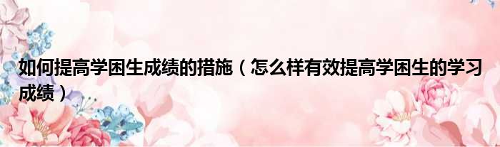 如何提高学困生成绩的措施(怎么样有效提高学困生的学习成绩)