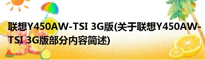 联想Y450AW-TSI 3G版(关于联想Y450AW-TSI 3G版部分内容简述)