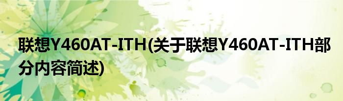 联想Y460AT-ITH(关于联想Y460AT-ITH部分内容简述)