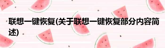 联想一键恢复(关于联想一键恢复部分内容简述)