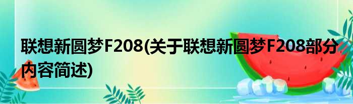 联想新圆梦F208(关于联想新圆梦F208部分内容简述)
